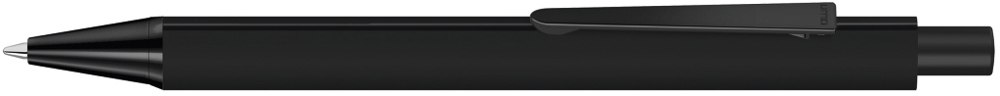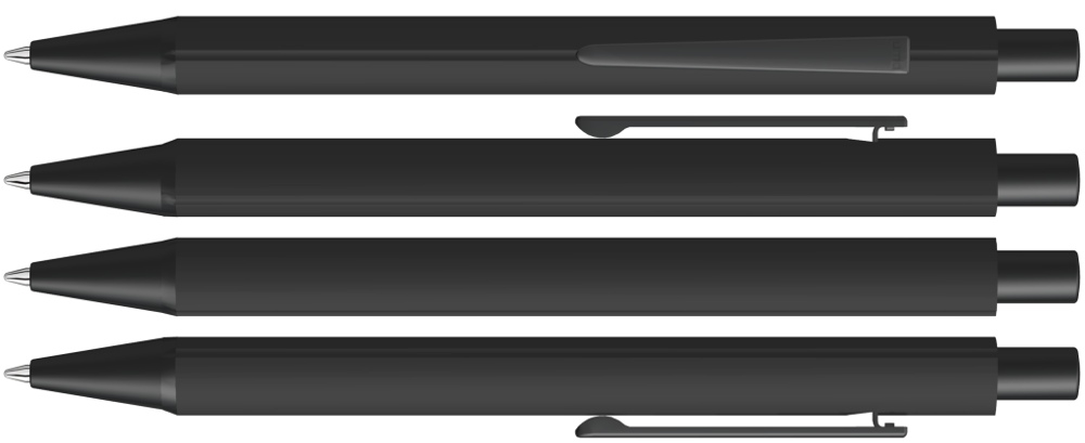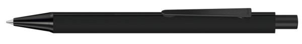 Metall-Druckkugelschreiber mit Softtouch-Dreikantgehäuse, Metallclip, Metallspitze und Drücker in schwarz matt.