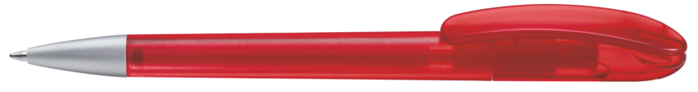 Drehkugelschreiber mit transparent gefrostetem Gehäuse. Schwere matt verchromte Metallspitze.