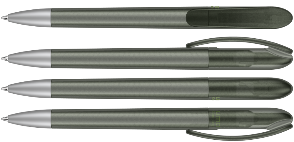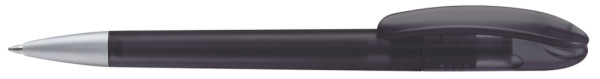 Drehkugelschreiber mit transparent gefrostetem Gehäuse. Schwere matt verchromte Metallspitze. mehr