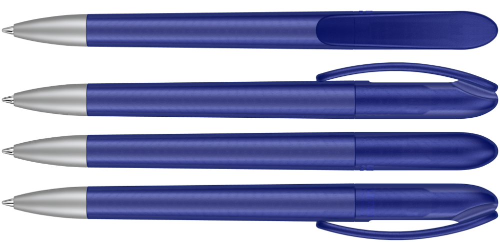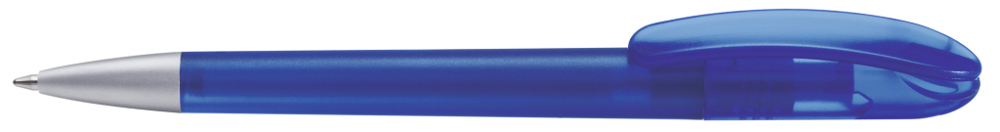 Drehkugelschreiber mit transparent gefrostetem Gehäuse. Schwere matt verchromte Metallspitze. mehr