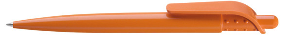 Druckkugelschreiber mit gedeckt glänzendem Gehäuse und großem Clip an genoppter Clipaufhängung.