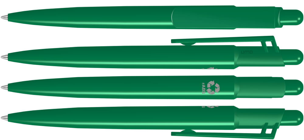 Druckkugelschreiber mit gedeckt glänzendem Gehäuse aus 100% recyceltem Kunststoff und großem Clip an verstärkter Clipanbindung. Das Modell ist mit dem dem rABS Logo gekennzeichnet. Dank der ClimatePartner-zertifizierten Produktion leistet der uma VITAN RECY einen zusätzlichen nachhaltigen Beitrag zur Schonung der Umwelt. Aufgrund der Besonderheit des Materials (ABS Recycled Plastic) sind produktionstechnische Farbschwankungen gegeben.