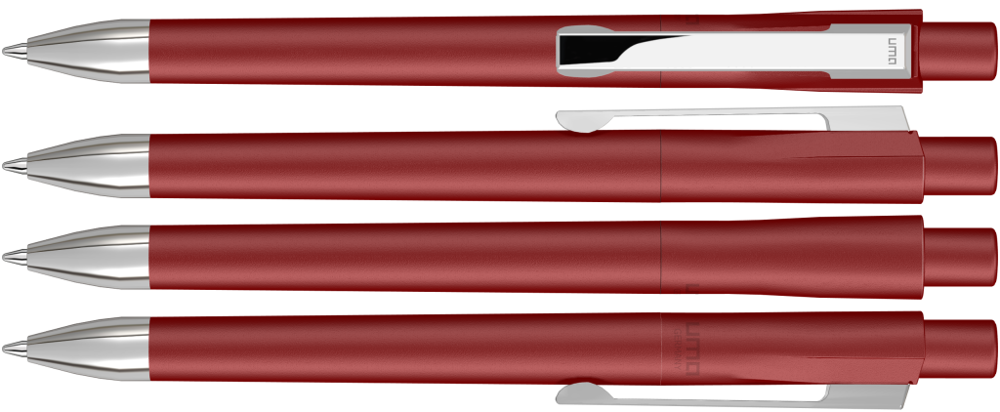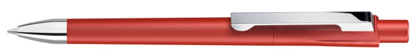 Druckkugelschreiber mit gedeckt mattem Gehäuse. Schwere Metallspitze und Metallclip glanzverchromt.