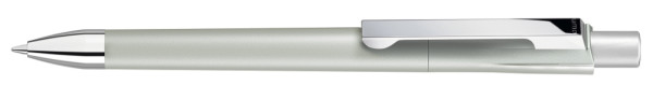 Druckkugelschreiber mit gedeckt mattem Gehäuse. Schwere Metallspitze und Metallclip glanzverchromt. mehr