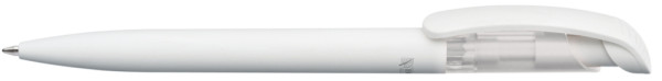 Druckkugelschreiber mit Gehäuse und Clip aus 100% nachwachsendem und kompostierbarem Material. Oberteil aus gefrostetem ABS Kunststoff.