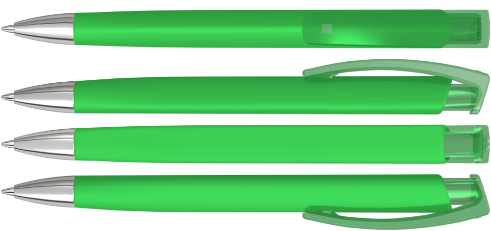 Druckkugelschreiber mit gedeckt mattem Dreikantgehäuse, transparent glänzendem Clip aus... mehr