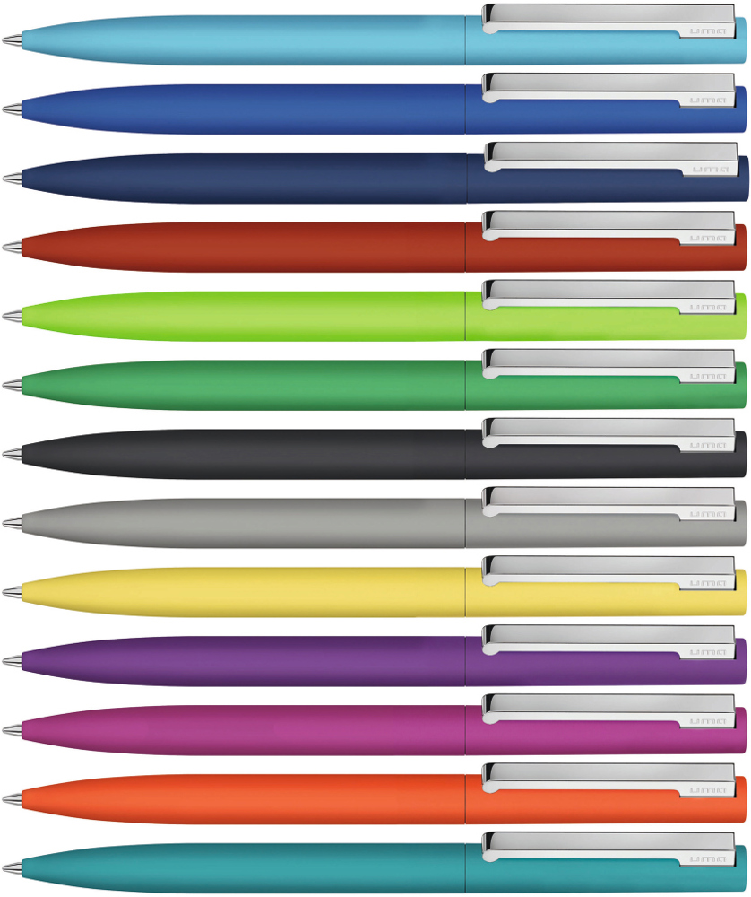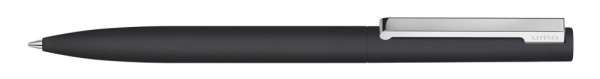 Metall-Drehkugelschreiber mit Softtouch-Gehäuse und gefedertem Metallclip silber glänzend.