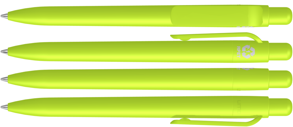 Druckkugelschreiber aus recyceltem PET-Material mit matt gedecktem Gehäuse, Clip, Drücker und Stopfen.