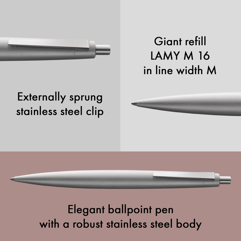Am Anfang war der LAMY 2000: Seit 1966 schreibt die Ikone Designgeschichte. Damals wie heute ist der LAMY 2000 ein fester Ankerpunkt des LAMY Designs. Er sticht vor allem durch sein hohes Niveau an Ingenieurskunst heraus und verkörpert eine einzigartige Symbiose aus Ästhetik und Funktionalität. Erleben Sie ein Schreibgefühl der Premiumklasse dank nahtloser Materialkombinationen, fremdgefedertem Edelstahlclip und angenehmer Ausbalancierung des Körpers. Kugelschreiber aus rostfreiem und strichmattiertem Edelstahl, abgefederter Edelstahlclip