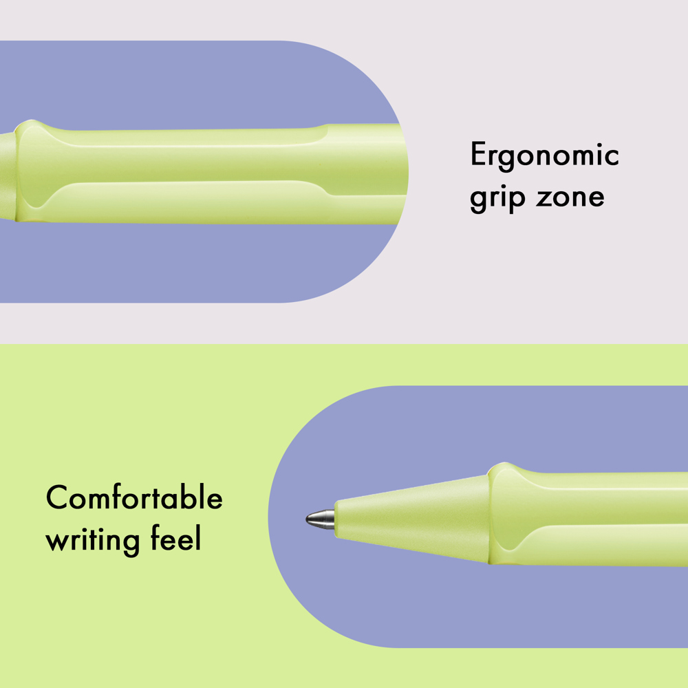 Der LAMY safari ist mehr als die Summe seiner Details: Er ist ästhetisch, robust und individuell. Der markante, selbstfedernde Clip hält das Schreibgerät sicher an Ort und Stelle befestigt. Das Gehäuse aus schlagzähem Kunststoff macht ihn zum robusten Begleiter in jedem Umfeld und die abgeflachte Form verhindert versehentliches Wegrollen. Funktionale Details wie subtil ergonomisch geformte Griffflächen und ein Sichtfenster zur Kontrolle des Tintenstands fügen sich wie selbstverständlich in das Design ein und machen den LAMY safari zum modernen Klassiker. Aus robustem ABS-Kunststoff, griffsympathisch durch markante Griffmulden, mit selbstfederndem Metallclip,