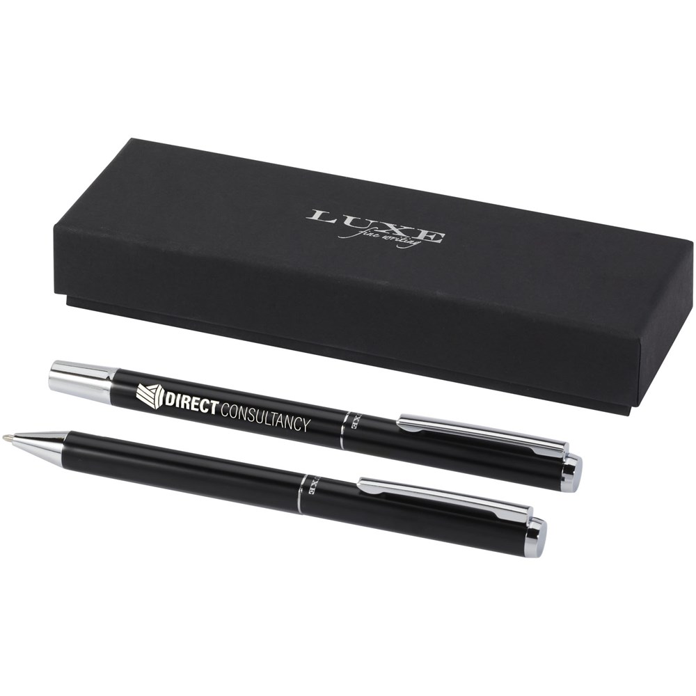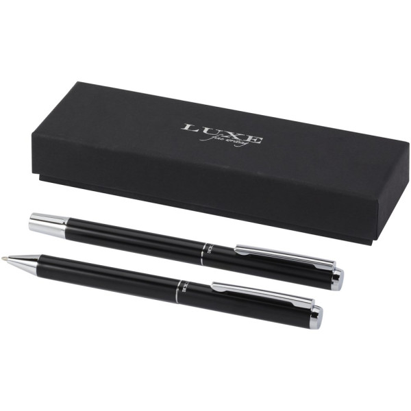 Lucetto Set mit Kugelschreiber und Tintenroller aus recyceltem Aluminium (schwarze Mine)