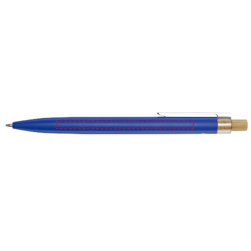 Der Nooshin Kugelschreiber wird aus recyceltem Aluminium hergestellt, was weniger Energie benötigt als die Herstellung von Aluminium aus Rohstoffen. Es reduziert außerdem die Abfallmenge auf Mülldeponien und trägt dazu bei, natürliche Ressourcen zu schonen und Treibhausgasemissionen zu reduzieren. Druckknopf ist aus Bambus gefertigt. Tintenfarbe: Blau. Schreiblänge: 800 Meter. Spitzengröße: 1,00 mm.