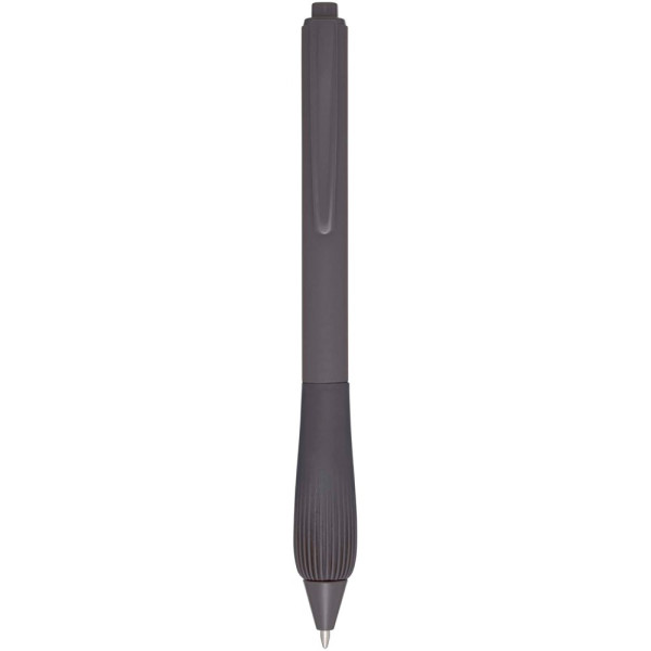 Kugelschreiber aus recyceltem Kunststoff mit gummiertem Schaft und Griff aus TPR. Tintenfarbe: Schwarz. Schreiblänge: 1000 Meter. Strichstärke: 1,0 mm.