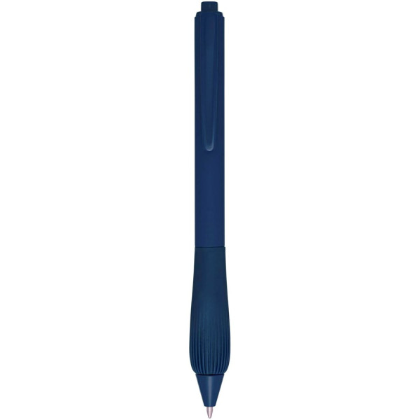 Kugelschreiber aus recyceltem Kunststoff mit gummiertem Schaft und Griff aus TPR. Tintenfarbe: Blau. Schreiblänge: 1000 Meter. Strichstärke: 1,0 mm.