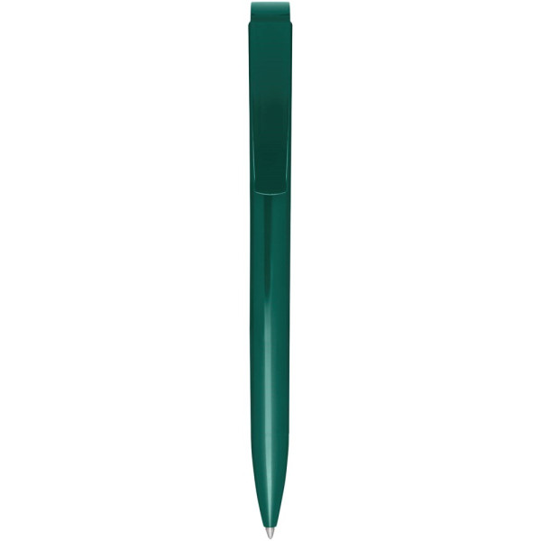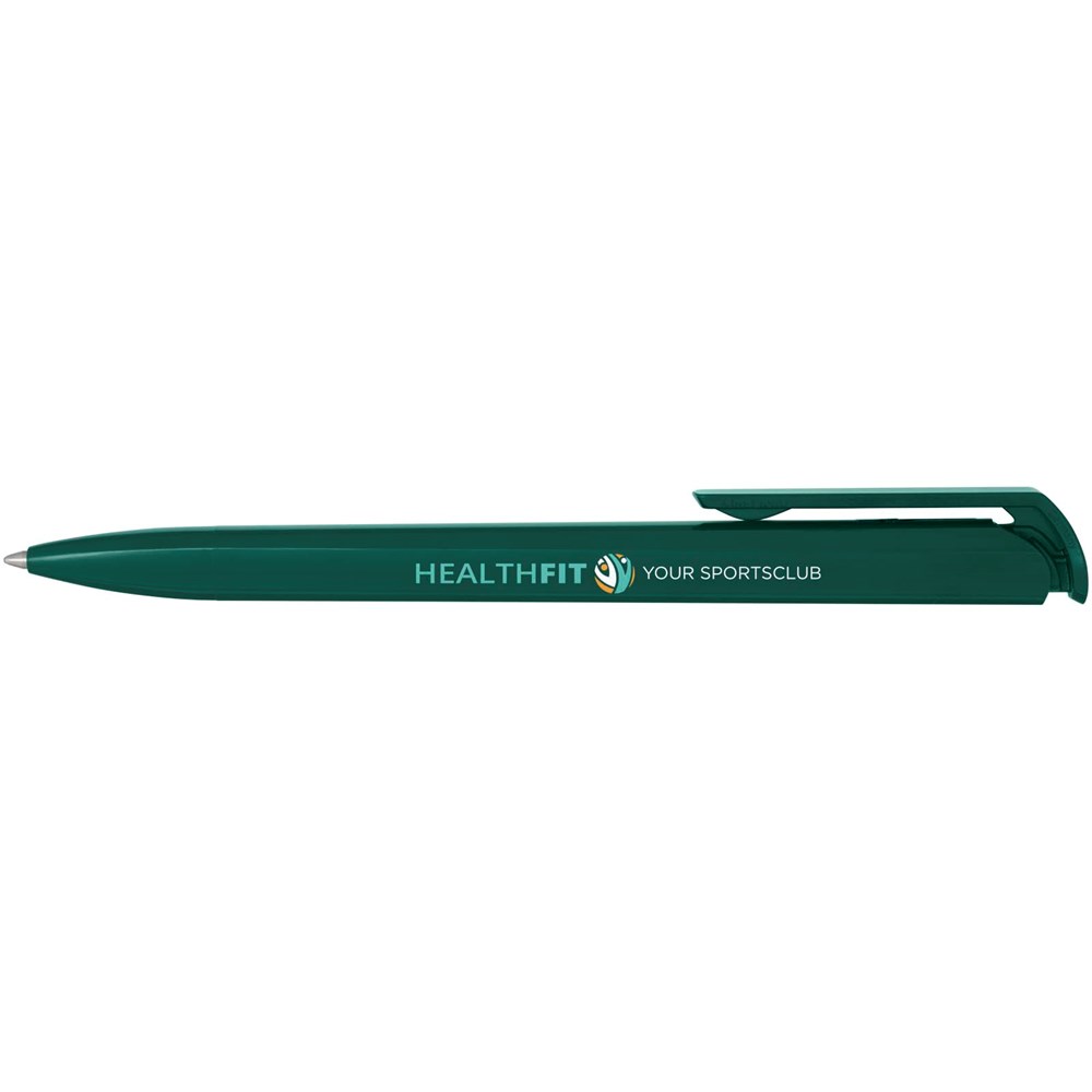 Kugelschreiber mit Schaft, Clip und Spitze aus recyceltem Kunststoff. Tintenfarbe: Blau. Schreiblänge: 3000 Meter. Strichstärke: 1,00 mm. Hergestellt in Deutschland.