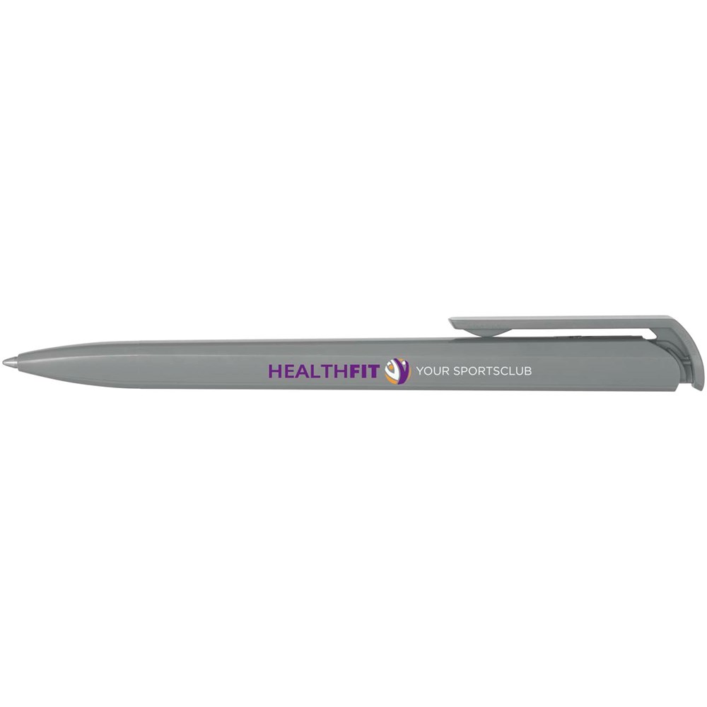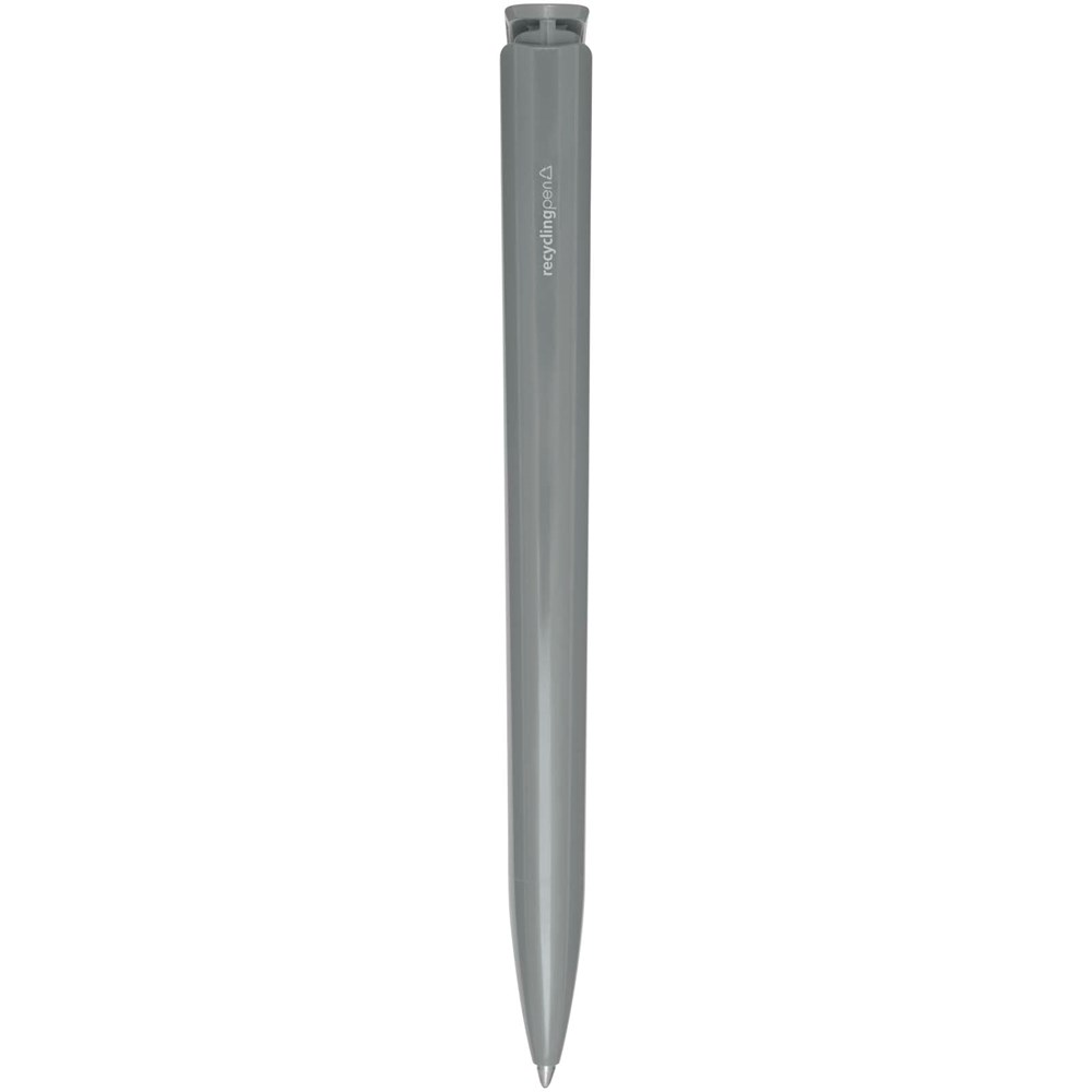 Kugelschreiber mit Schaft, Clip und Spitze aus recyceltem Kunststoff. Tintenfarbe: Blau. Schreiblänge: 3000 Meter. Strichstärke: 1,00 mm. Hergestellt in Deutschland.