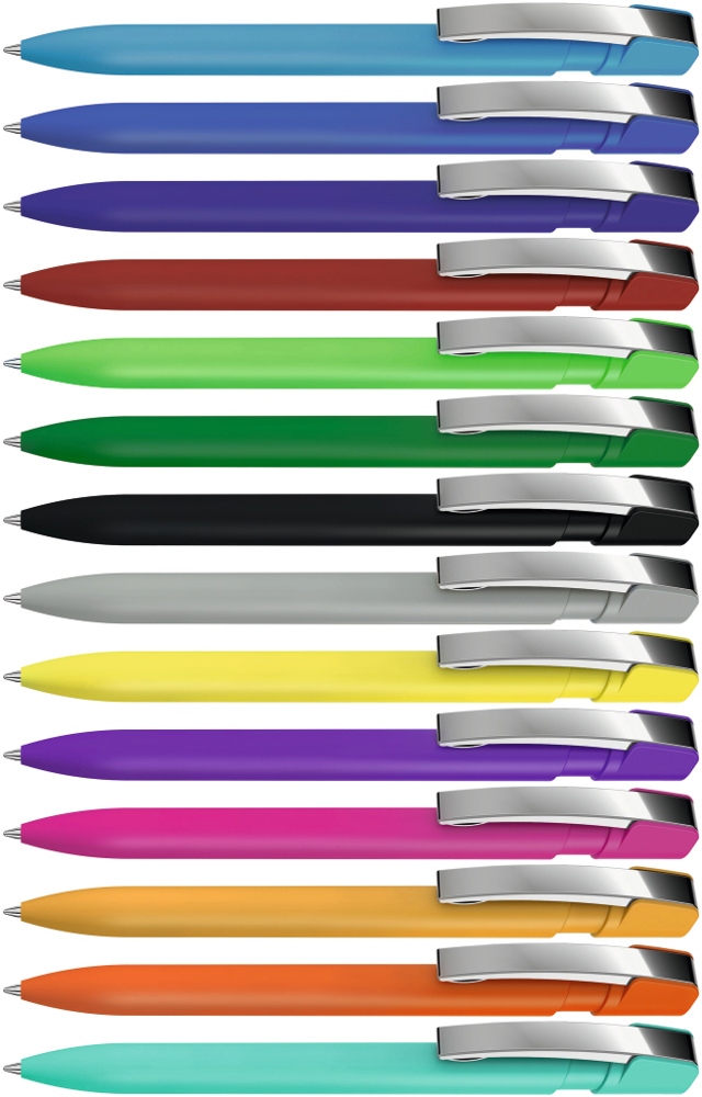 Druckkugelschreiber mit Softtouch-Gehäuse und flexiblem Metallclip. mehr