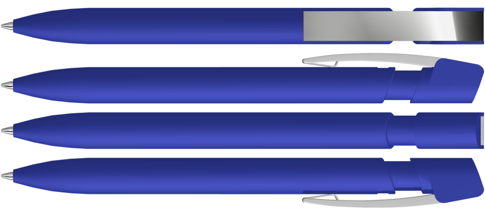 Druckkugelschreiber mit Softtouch-Gehäuse und flexiblem Metallclip.
