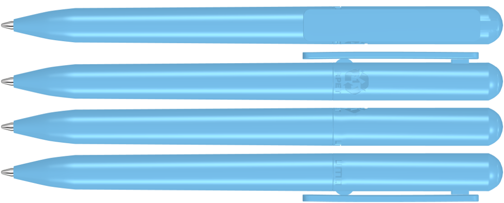 Drehkugelschreiber aus recyceltem PET-Material mit gedeckt glänzendem Gehäuse.