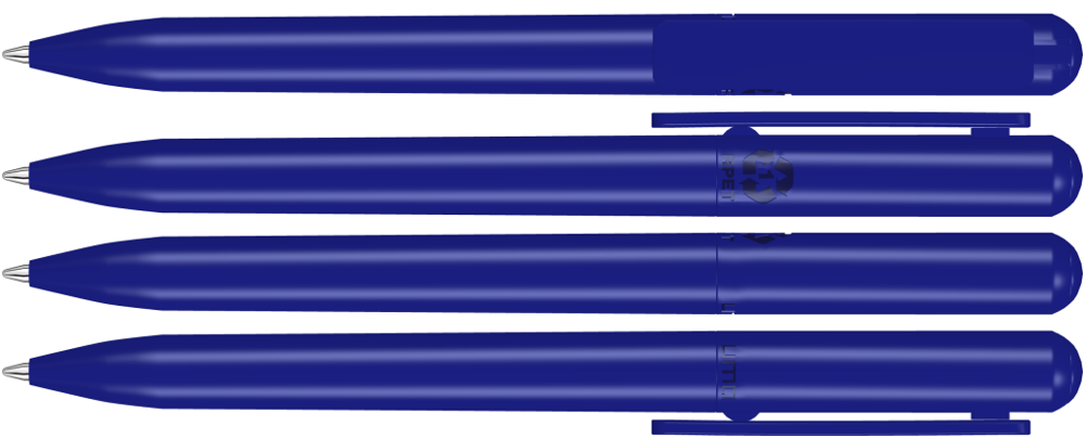 Drehkugelschreiber aus recyceltem PET-Material mit gedeckt glänzendem Gehäuse.