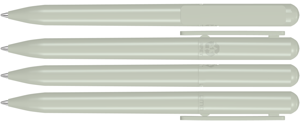 Drehkugelschreiber aus recyceltem PET-Material mit gedeckt glänzendem Gehäuse.