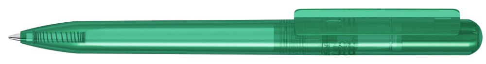 Drehkugelschreiber aus recyceltem PET-Material mit transparent glänzendem Gehäuse.