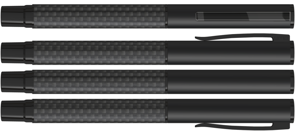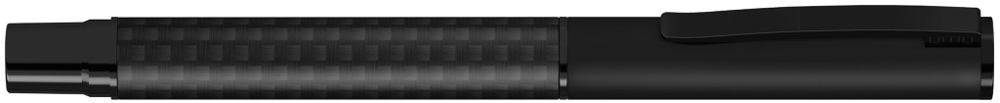 Metall-Rollerball mit Schaft aus Carbonfaser in schwarz und gefedertem Metallclip. Beschlagteile schwarz matt lackiert.