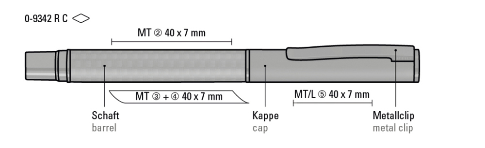 Metall-Rollerball mit Schaft aus Carbonfaser in schwarz und gefedertem Metallclip. Beschlagteile... mehr