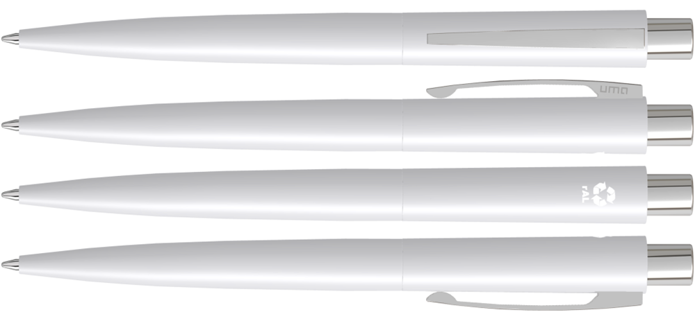 Metall-Druckkugelschreiber mit matt lackiertem Gehäuse aus recyceltem Aluminium. Metallclip und Drücker glanzverchromt.