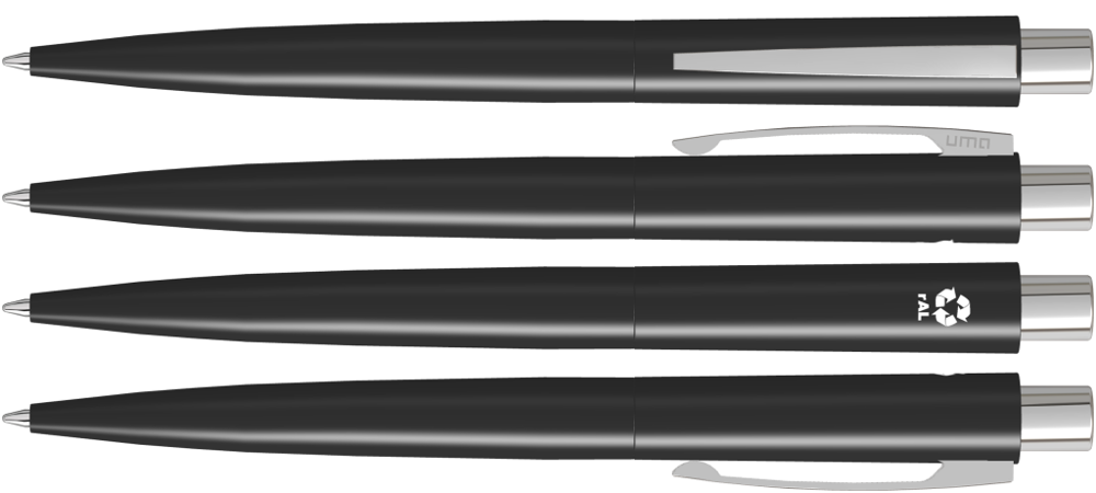 Metall-Druckkugelschreiber mit matt lackiertem Gehäuse aus recyceltem Aluminium. Metallclip und Drücker glanzverchromt.