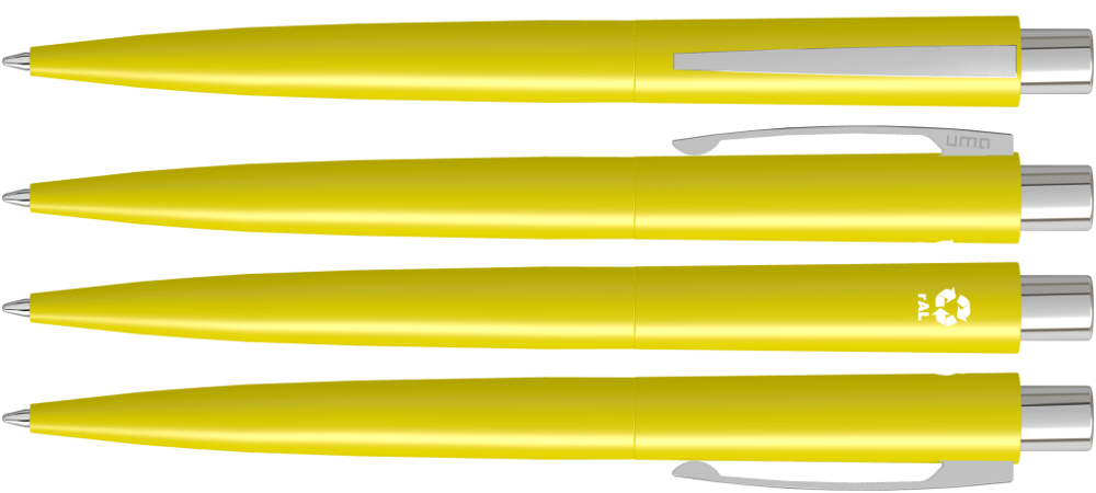 Metall-Druckkugelschreiber mit matt lackiertem Gehäuse aus recyceltem Aluminium. Metallclip und Drücker glanzverchromt.