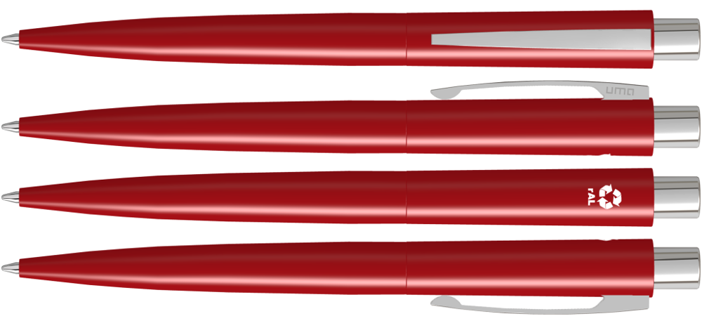 Metall-Druckkugelschreiber mit matt lackiertem Gehäuse aus recyceltem Aluminium. Metallclip und Drücker glanzverchromt.