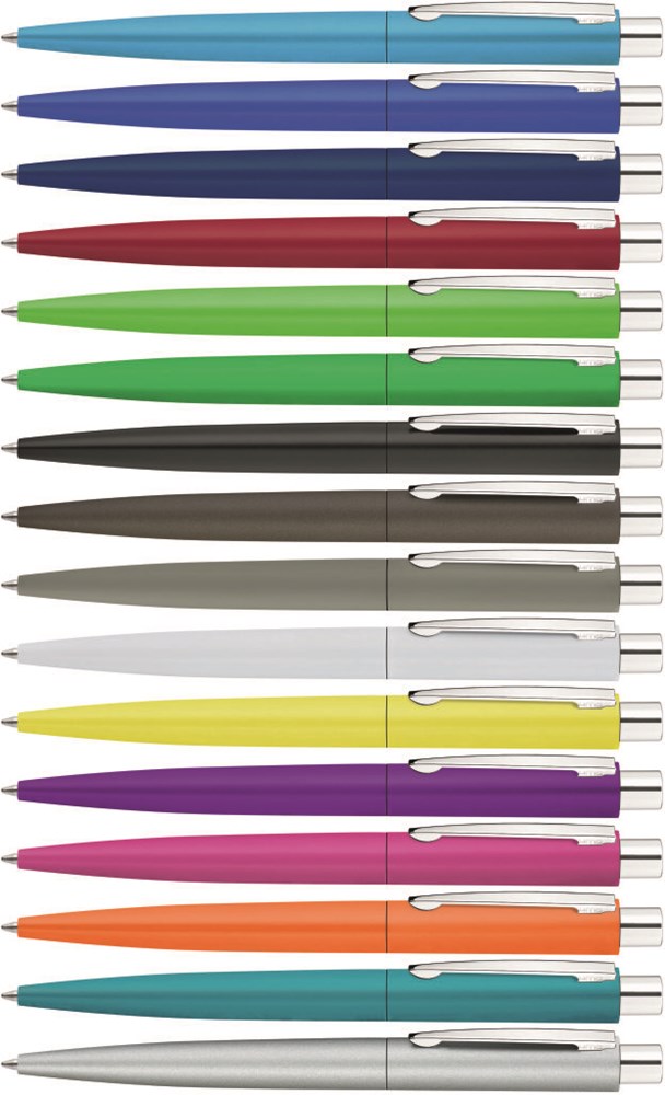 Metall-Druckkugelschreiber mit matt lackiertem Gehäuse aus recyceltem Aluminium. Metallclip und Drücker glanzverchromt.