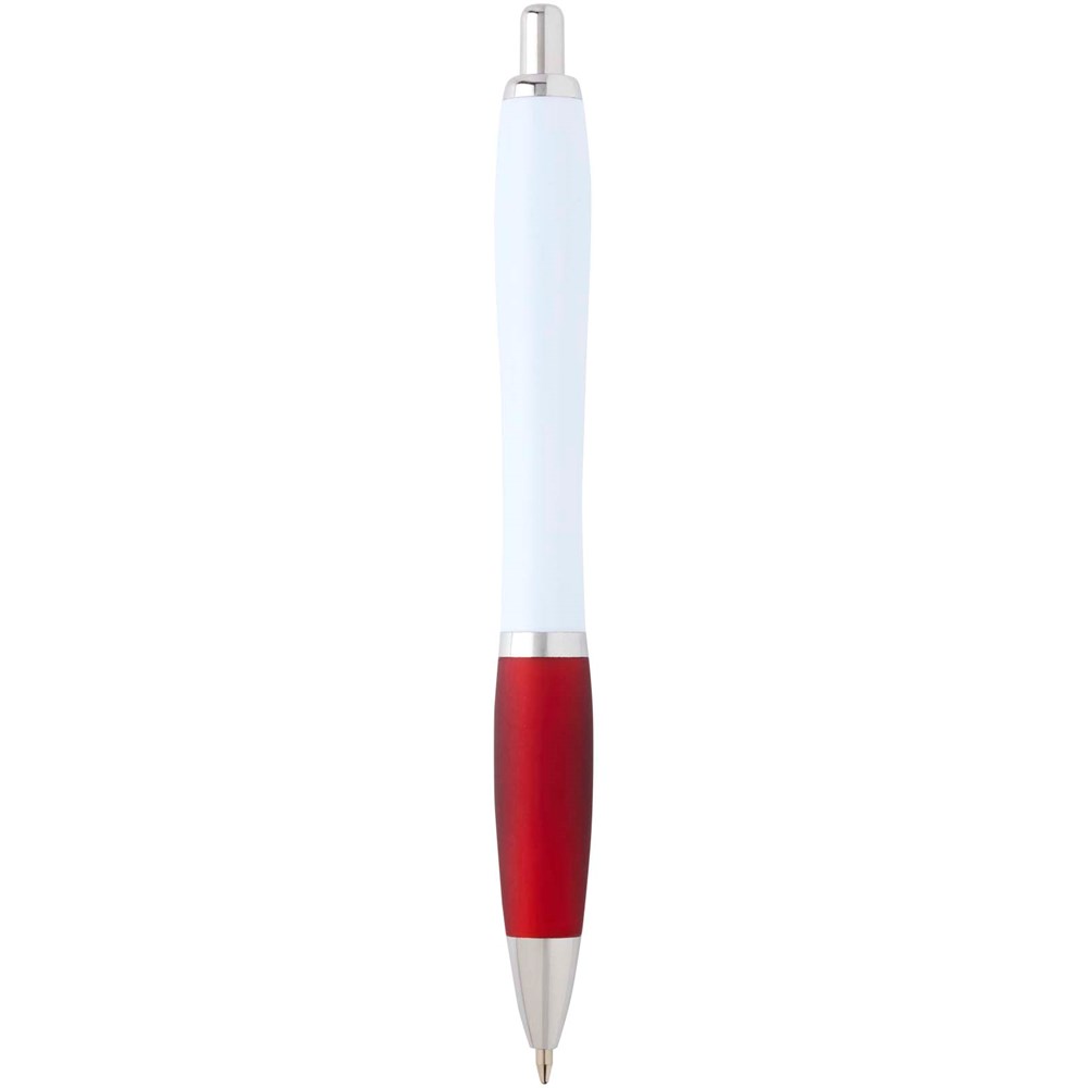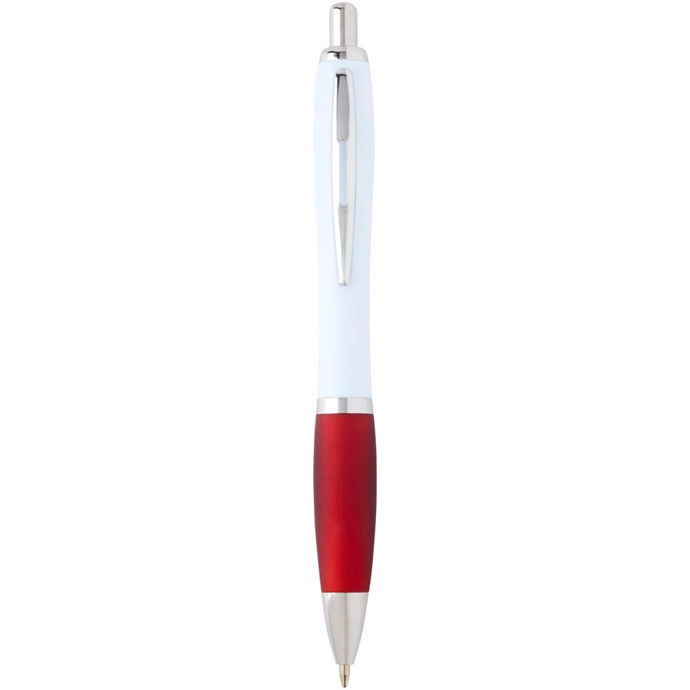 Der Nash Kugelschreiber besitzt ein elegantes, geschwungenes Design und einen weichen Griff. Er besteht aus recyceltem Kunststoff, der hart und stabil ist und dadurch eine lange Lebensdauer hat. Tintenfarbe: Blau. Schreiblänge: 1000 Meter. Schreibspitze: 1 mm.