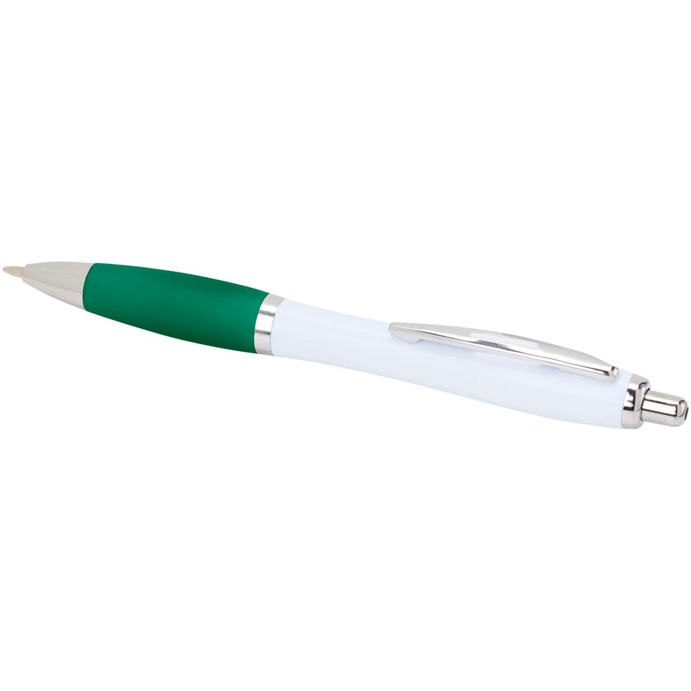 Der Nash Kugelschreiber besitzt ein elegantes, geschwungenes Design und einen weichen Griff. Er besteht aus recyceltem Kunststoff, der hart und stabil ist und dadurch eine lange Lebensdauer hat. Tintenfarbe: Blau. Schreiblänge: 1000 Meter. Schreibspitze: 1 mm.