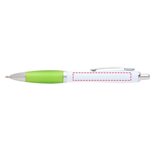 Der Nash Kugelschreiber besitzt ein elegantes, geschwungenes Design und einen weichen Griff. Er besteht aus recyceltem Kunststoff, der hart und stabil ist und dadurch eine lange Lebensdauer hat. Tintenfarbe: Blau. Schreiblänge: 1000 Meter. Schreibspitze: 1 mm.