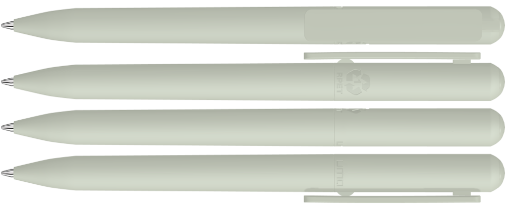 Drehkugelschreiber mit gummiertem Gehäuse aus recyceltem PET-Material mit glänzend gedecktem Clip. mehr