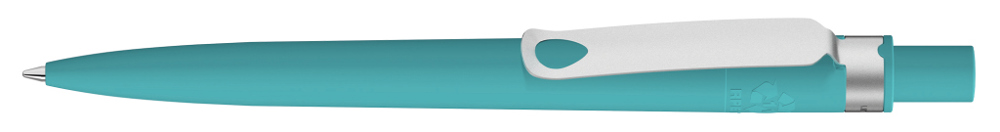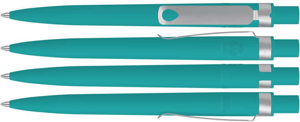 Druckkugelschreiber mit gummiertem Gehäuse aus recyceltem PET-Material mit Metallclip matt verchromt.