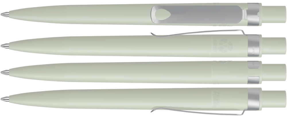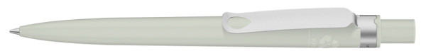 Druckkugelschreiber aus recyceltem PET-Material mit matt gedecktem Gehäuse und Metallclip matt verchromt.