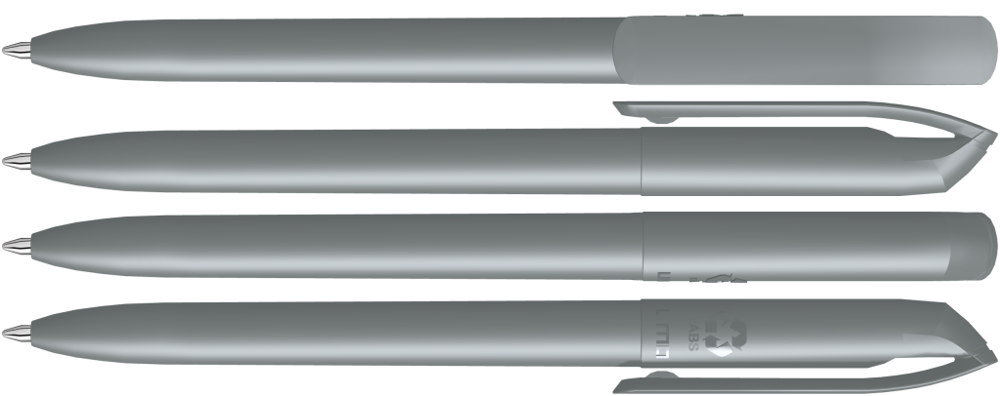 Drehkugelschreiber mit gedeckt mattem Gehäuse und Clip aus recyceltem ABS-Kunststoff.