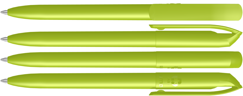 Drehkugelschreiber mit gedeckt mattem Gehäuse und Clip aus recyceltem ABS-Kunststoff. mehr