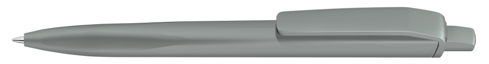 Druckkugelscheiber mit gedeckt mattem Gehäuse, Clip und Drücker aus recyceltem ABS-Kunststoff. Griffzone ergonomisch geformt.