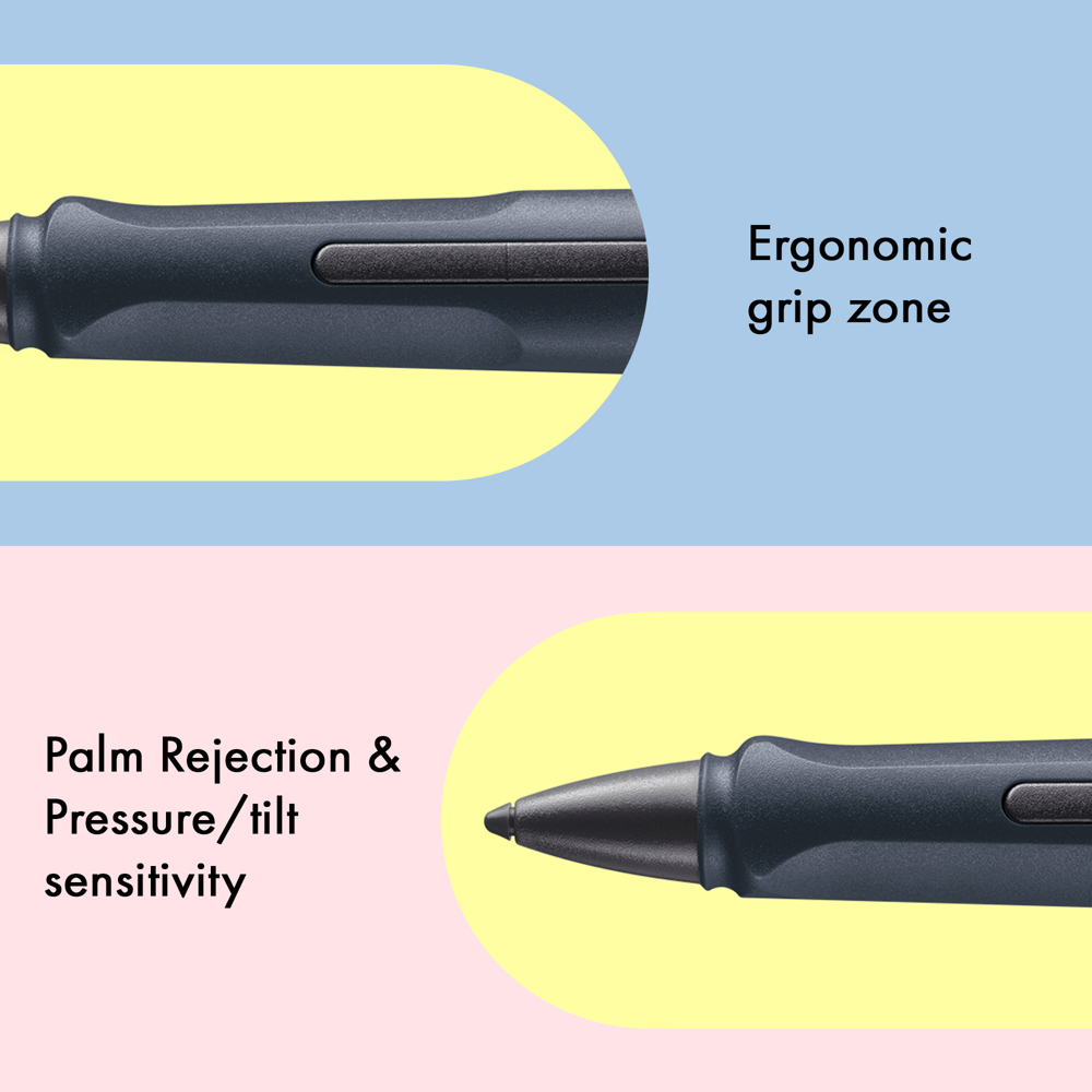 Ikonisches, unverwechselbares Design, perfekte Ergonomie und höchste Qualität machen den LAMY safari note+ zu einem echten Schreibgerät für die digitale Welt – passend für alle, die in der Apple-Welt zu Hause sind. Der LAMY safari note+ ist der einzige seiner Klasse mit ergonomischem Design und einer Kappe zum Schutz der Spitze. Verfügbar in mehreren Farben, verkörpert der LAMY safari note+ zudem die bewährte Lamy-Tradition der Selbstentfaltung und Individualität durch Farbauswahl. Einfach einschalten und loslegen: Ob Zeichnen, Malen, Organisieren, Bilder bearbeiten, Videos schneiden oder Spielen – der LAMY safari note+ ist ein vielseitiger Begleiter im Alltag, bei der Arbeit, in der Uni oder Schule für die Nutzung verschiedenster Apps auf dem iPad. Ein Schreiberlebnis, das über einfache Notizen hinausgeht – präzise, reaktionsschnell und inspirierend. Die Einsatzmöglichkeiten der digitalen Schreibgeräte von LAMY sind nahezu unbegrenzt. Sie geben jeder Persönlichkeit, jedem Lebensgefühl und jeder Botschaft ihre ganz individuelle Ausdrucksform. Ergonomische Griffzone; Zwei konfigurierbare Funktionstasten*; weiche, auswechselbare Spitze; selbstfedernder Bügelclip; Kappe zum Schutz der Spitze; USB-C Ladefunktion; Handballenerkennung; Druckempfindlichkeit*; Neigungsempfindlichkeit; keine Koppelung erforderlich; Bis zu 10 Stunden Akkulaufzeit; 1 Stunde Batterieladezeit Lieferumfang: LAMY safari note+ all black, 2 Ersatzspitzen, USB-A zu USB-C Ladekabel *nur bei Partner-Apps, mehr Infos finden Sie hier: lamy.com/noteplus