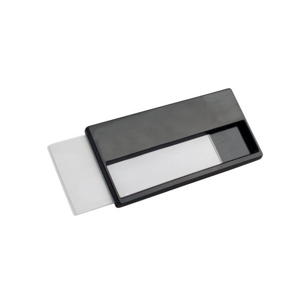 Namensschild Oliver für jede Gelegenheit. Das Namensschild hat eine feste Rahmenform und bietet die Möglichkeit, Namen einfach selbst auszutauschen. Das Namensschild Oliver hat einen Magnetverschluss und kann mit einer Lasergravur und einem Vollfarbdruck personalisiert werden.