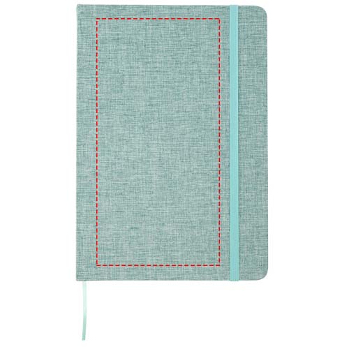 Hardcover Notizbuch im Format A5 aus Recyclingbaumwolle mit 80 Blatt liniertem 70 g/m² Papier. Das Notizbuch hat einen elastischen Verschluss, ein Lesebändchen und abgerundete Ecken.