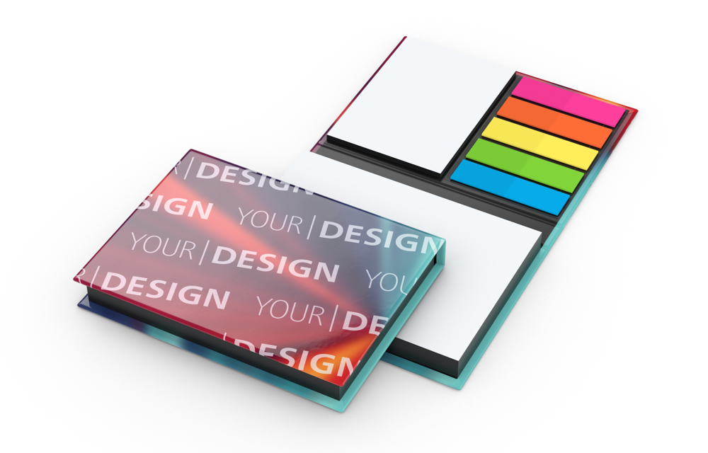 Das Kombi-Set Wien Bestseller mit Farbschnitt kombiniert exklusives Design mit praktischen Funktionen. Mit Farbschnitt, zwei Haftnotiz-Blöcke, einem Haftmarker-Set und einem individuell bedruckbaren Umschlag ist es die ideale Wahl für hochwertige und kreative Werbemittel.
