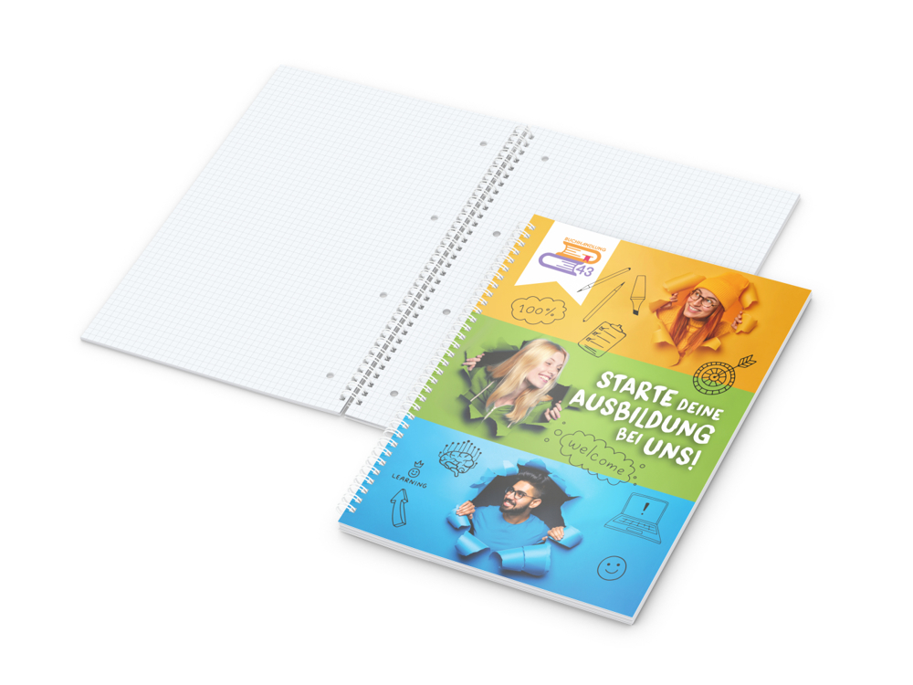 Der Collegeblock Wire-O Bestseller bietet ein klassisches Design mit moderner Funktionalität. Mit individuell bedruckbarem Titelblatt, hochwertiger Wire-O-Bindung und Mikroperforation ist er ein vielseitiges Werbemittel für den Büroalltag, Messen oder Kundengeschenke.