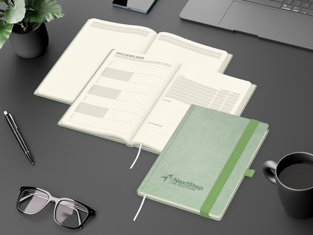Das orgaLine Mainbook ist ein professionelles Hardcover-Notizbuch für den Businessalltag. Es kombiniert moderne Organisationsvorlagen mit hochwertiger Verarbeitung und bietet eine wirkungsvolle Werbefläche durch integrierte Blindprägung. Als Bestseller der orgaLine-Serie ist es inklusive Werbeeindruck zu einem attraktiven Komplettpreis erhältlich.