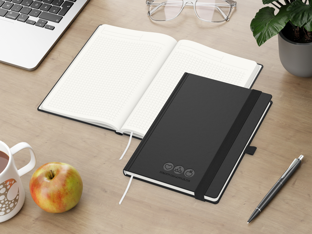 Das Organic-Book verbindet modernes Business-Design mit konsequent nachhaltigen Materialien. Als Werbeartikel-Notizbuch für den professionellen Einsatz überzeugt es durch hochwertige Verarbeitung, umweltfreundliche Inhaltsseiten und einen innovativen Einband aus Apfelleder. Ideal für Unternehmen, die Nachhaltigkeit sichtbar kommunizieren möchten.