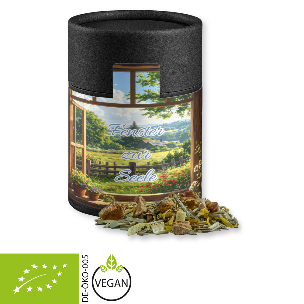 Bio Kräutertee Seelenwohl, ca. 27g, Kraftpapierdose Midi schwarz